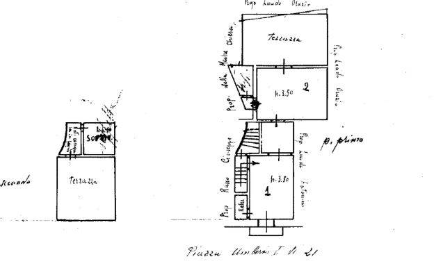 L’abitazione si sviluppa su due elevazioni (primo e secondo piano), collegate da una scala interna, ed è arricchita dalla presenza di tre terrazzi, sia sul fronte che sul retro dell’edificio.