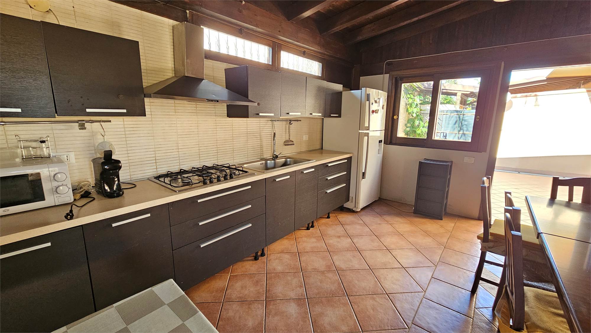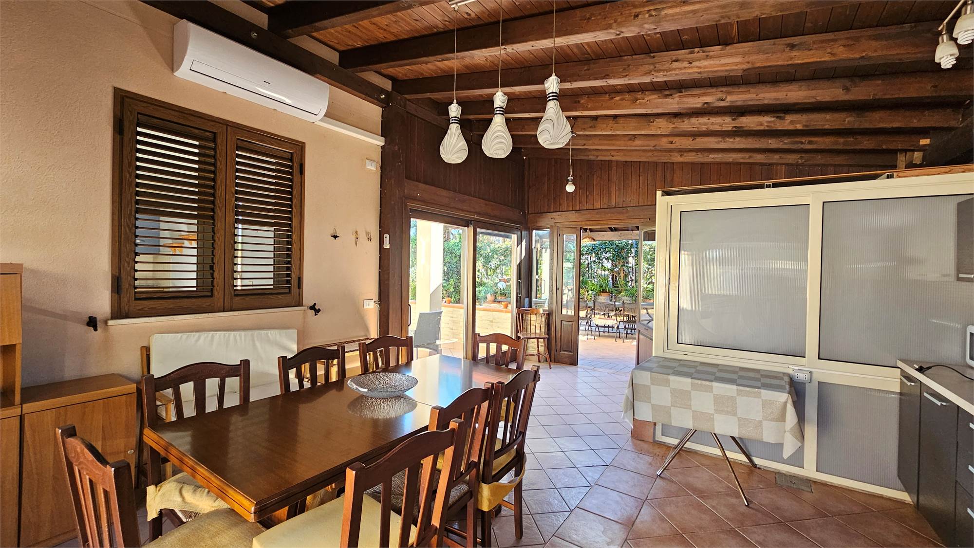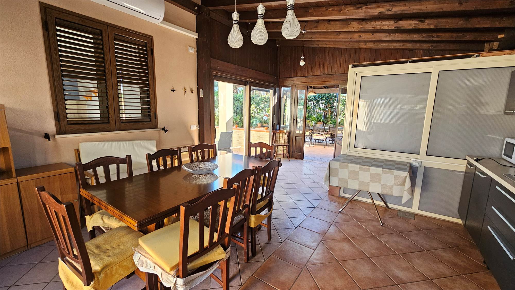 A completare la proprietà vi è una cucina verandata  indipendente, accogliente e luminosa, con area pranzo, angolo cottura, ampie vetrate e pavimentazione in ceramica, perfetta come spazio per ospiti, studio privato o zona hobby.