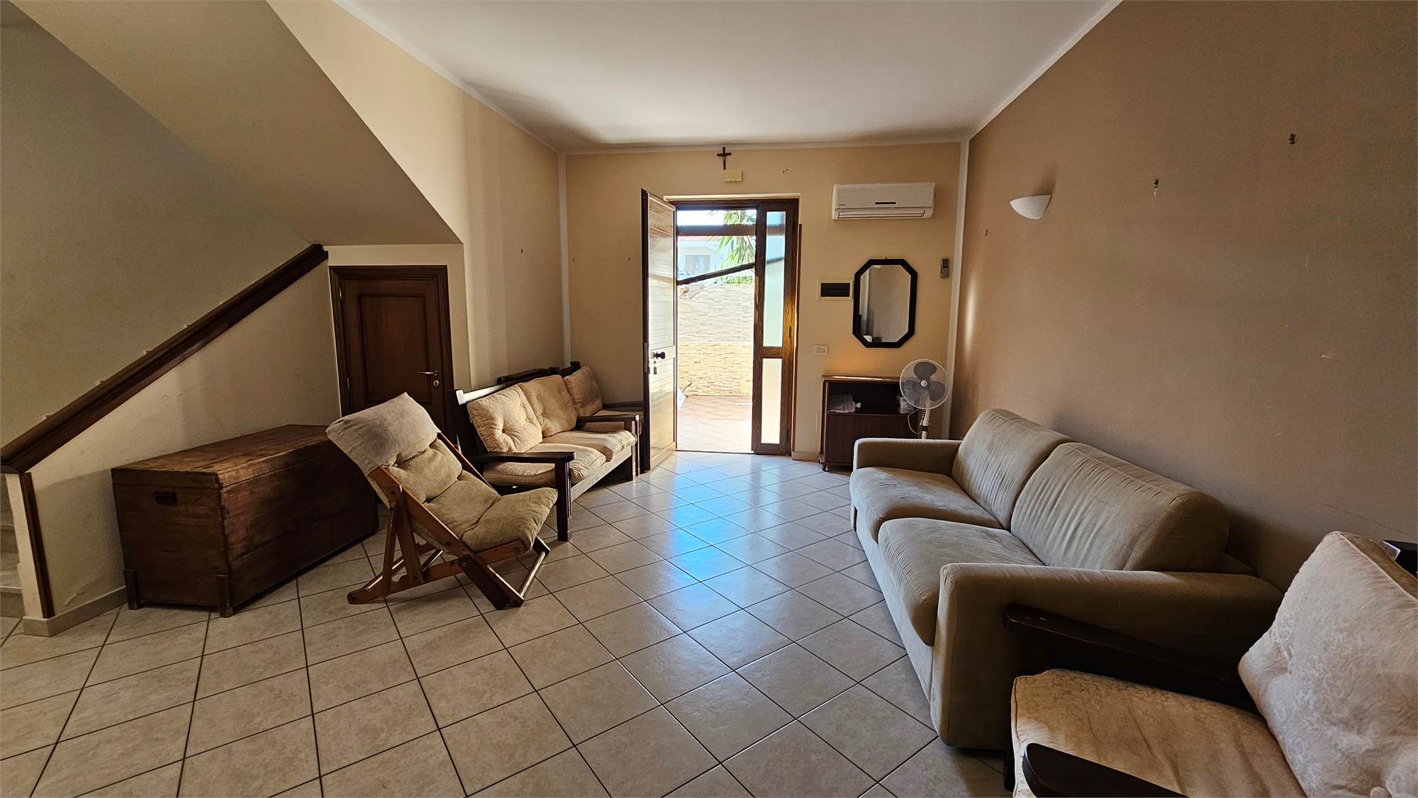 In una zona residenziale tranquilla e ben servita, a pochi minuti dal mare, si propone in vendita una villa bifamiliare di 120 mq in buono stato, disposta su due elevazioni, con ampio spazio esterno e dependance accessoria.