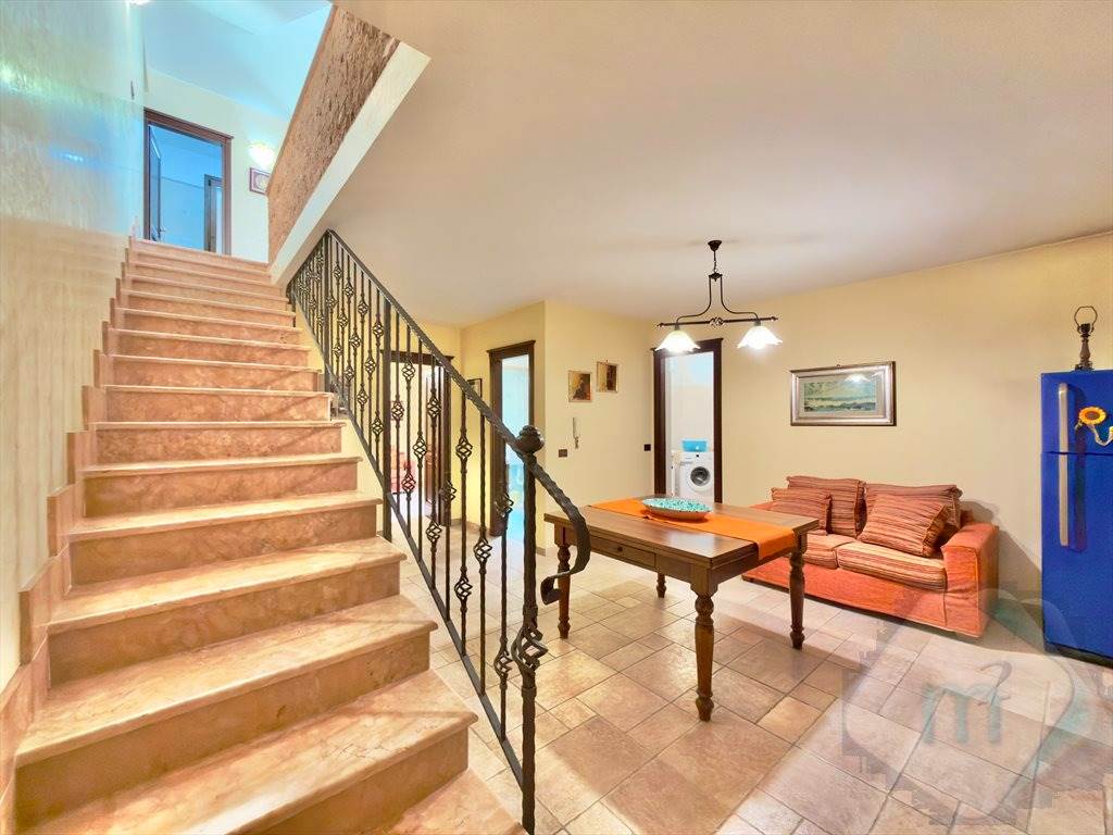 Tramite una comoda scala interna si accede al piano inferiore, dove si sviluppa un ambiente versatile e confortevole, ideale come zona relax o spazio indipendente per ospiti.