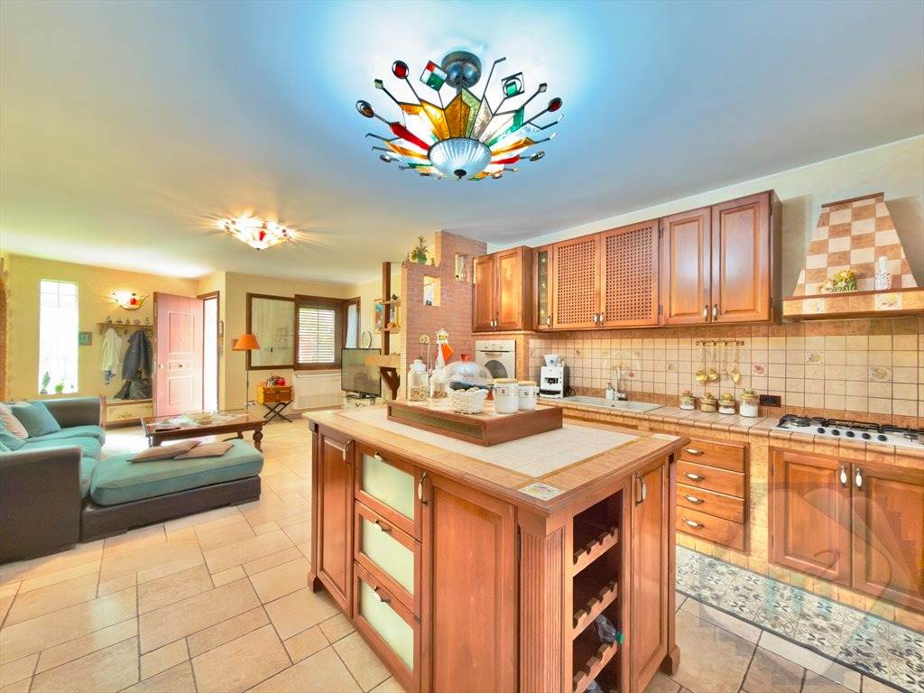 Un secondo ingresso conduce alla zona giorno, composta da una spaziosa cucina abitabile con annessa zona pranzo ,perfetta per la vita familiare o per accogliere ospiti.