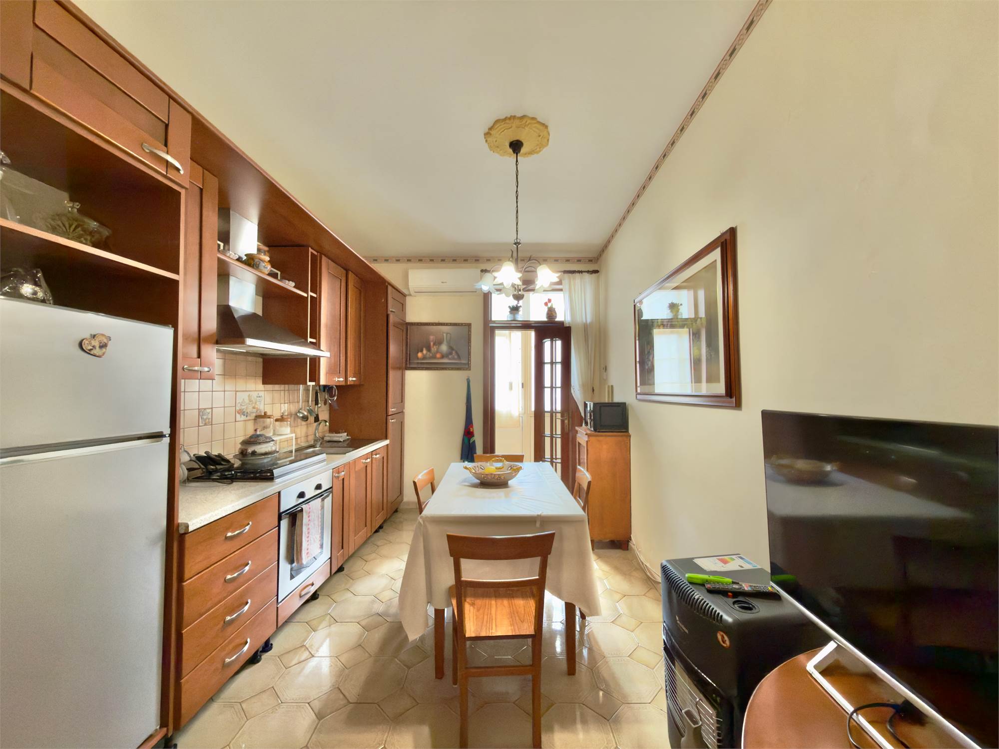 -Primo piano: ampia cucina luminosa con accesso a veranda e ampio bagno.